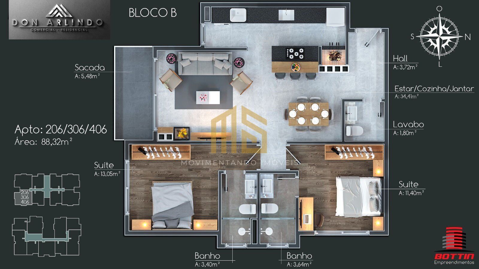 Don Arlindo - Canela - Centro - Canela/RSApartamento 02 S + Lav - Centro de Canela