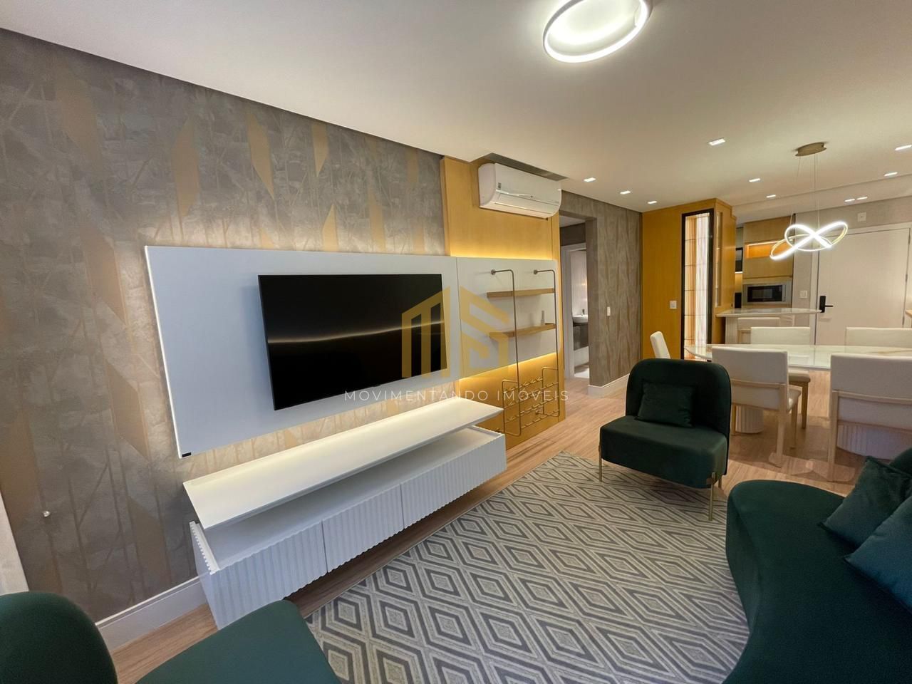 O apartamento possui 2 suítes e lavabo. Sala de estar e jantar integradas, cozinha com área de serviço, churrasqueira. Apartamento novo totalmente mobiliado e decorado, com moveis de alto padrão, feito pela Hasam, com splits instalados.
