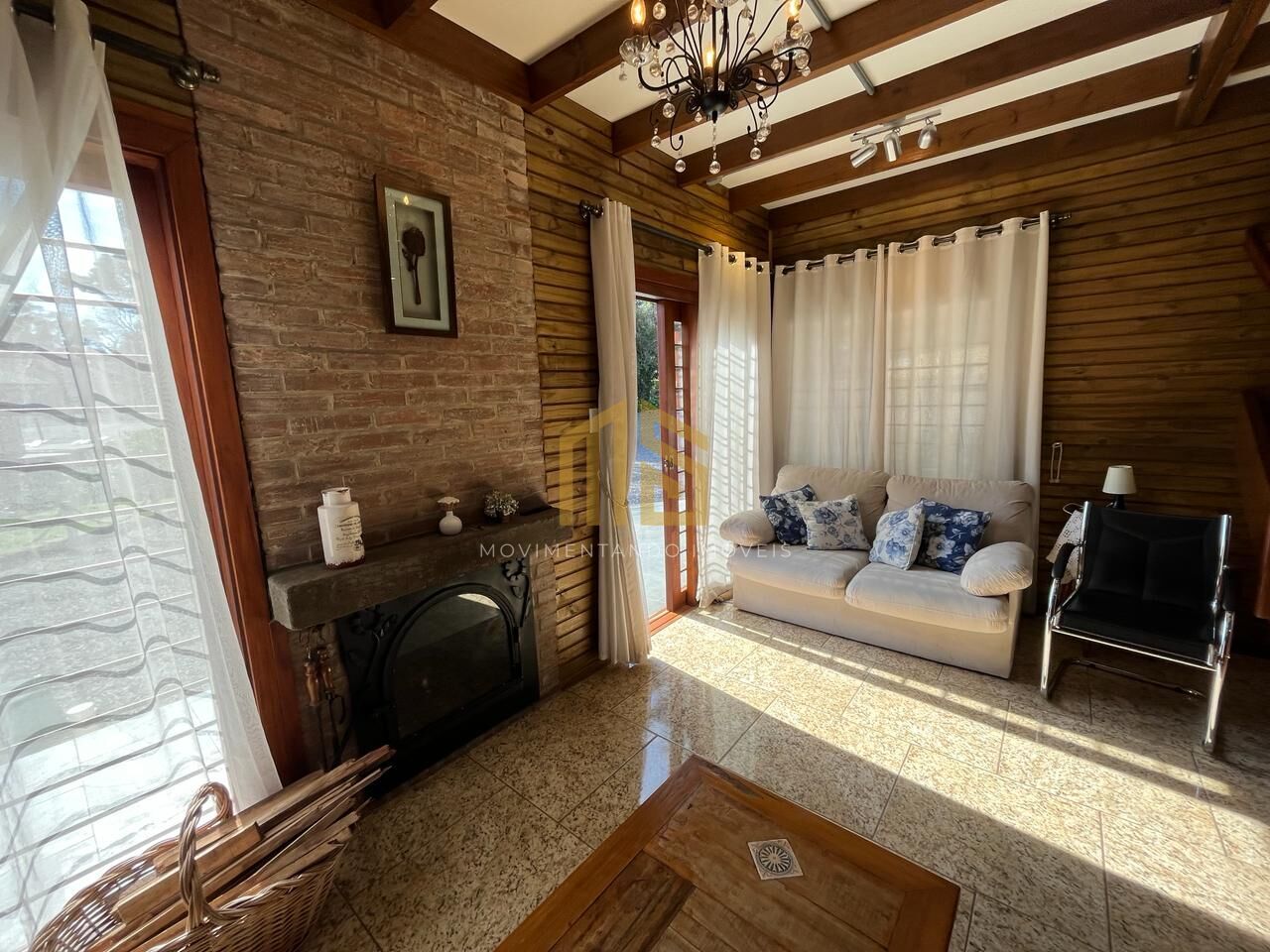 Esta residência é uma combinação de materiais, compreendendo 30% de madeira e 70% de alvenaria. A casa está equipada com isolamento térmico, janelas de vidro termoacústico, sistema de aquecimento de água a gás e uma churrasqueira.