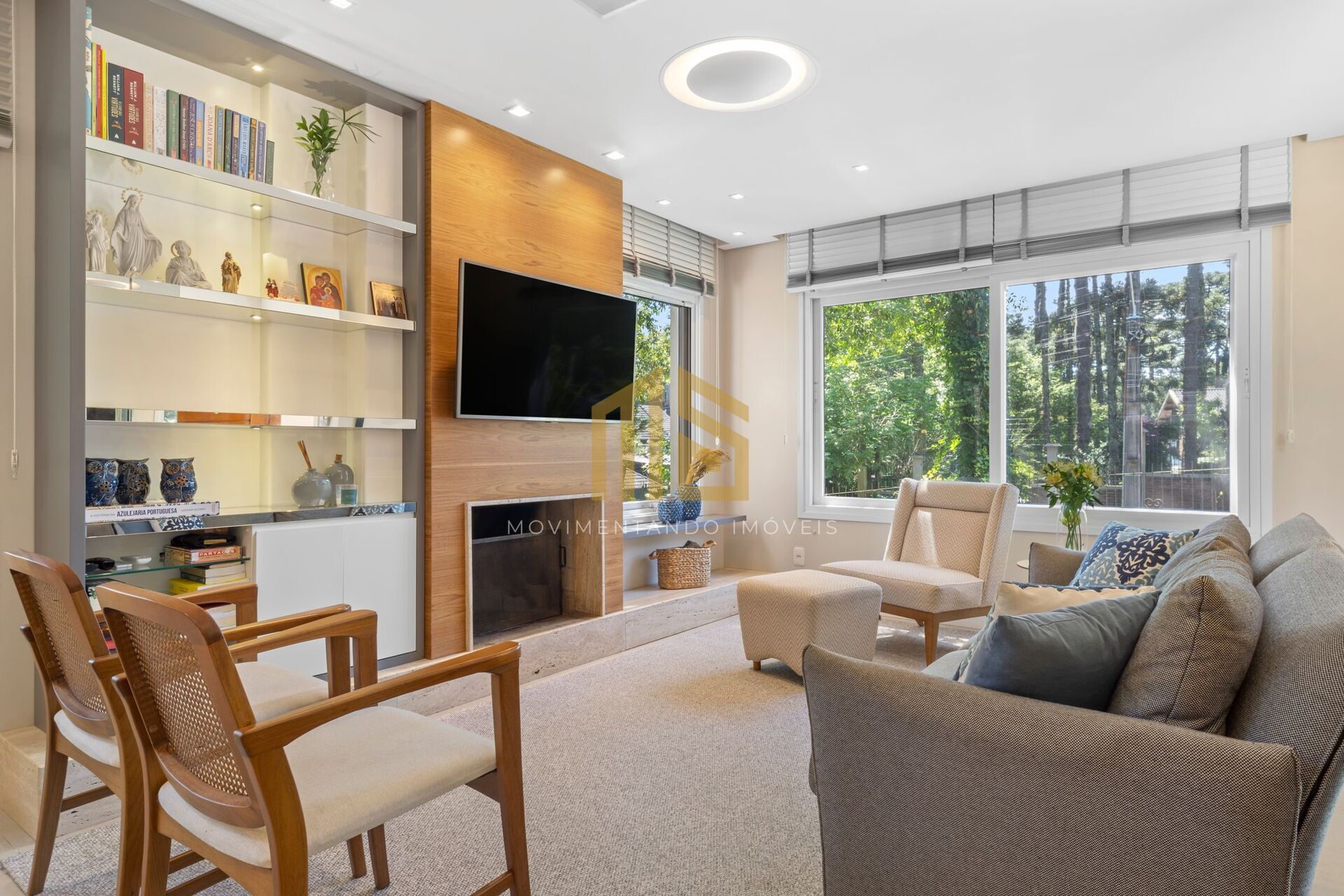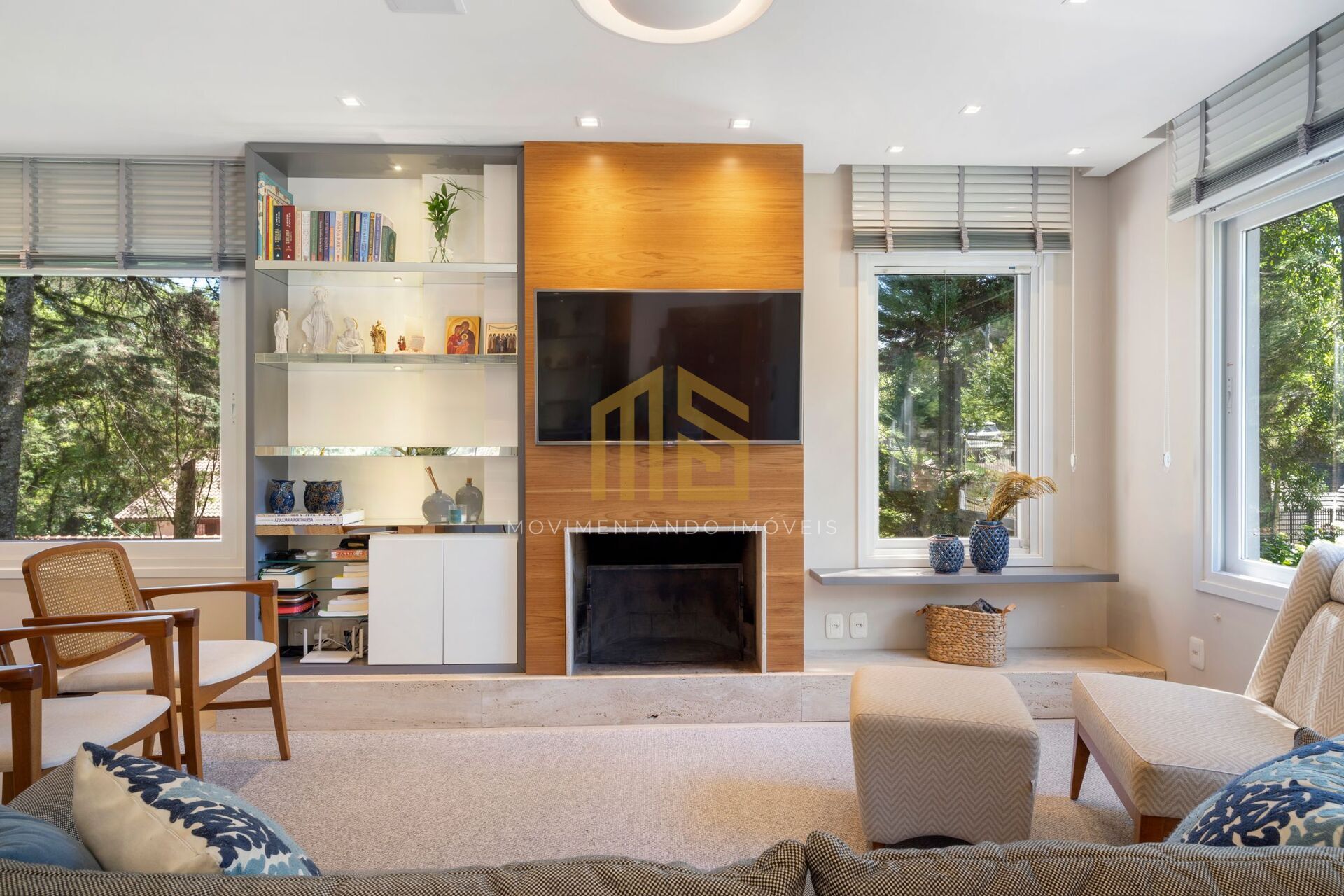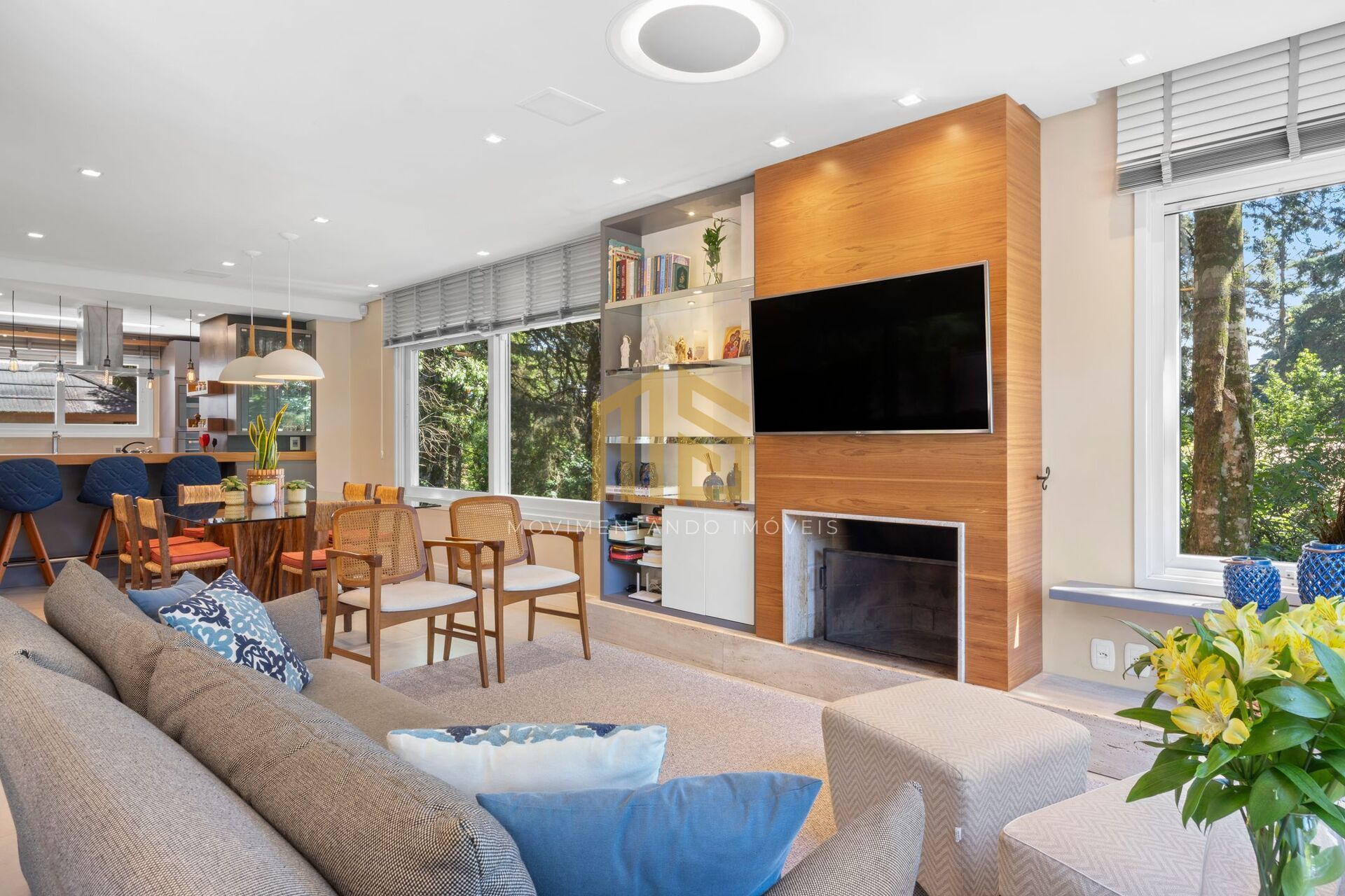 No subsolo, a casa conta com duas vagas de garagem cobertas, além de amplo depósito e uma área de lavanderia. No térreo, os ambientes são integrados, a sala de estar, equipada com lareira, a sala de jantar e a cozinha com churrasqueira, além de um lavabo que completa o andar. O segundo andar abriga as três suítes todas com persianas motorizadas e todos banheiros bem ventilados com iluminação natural.